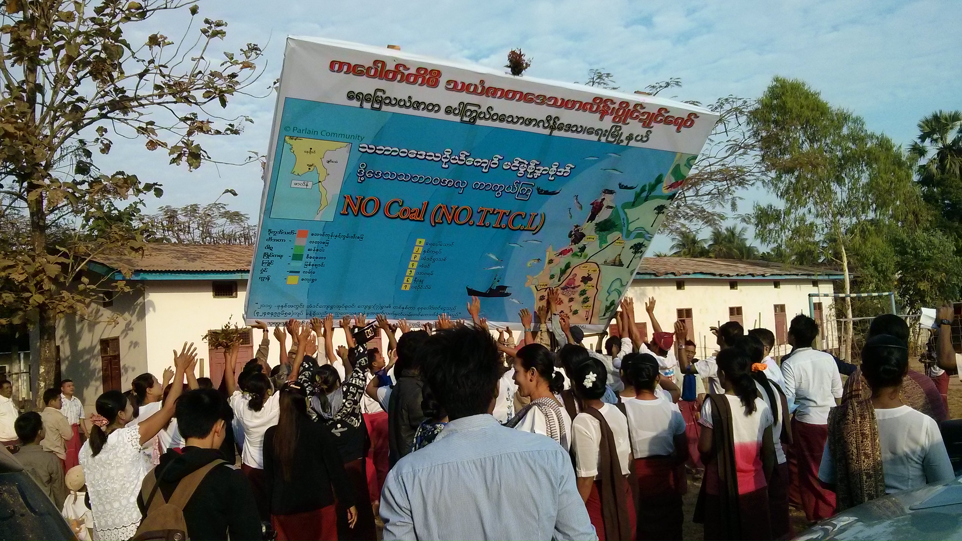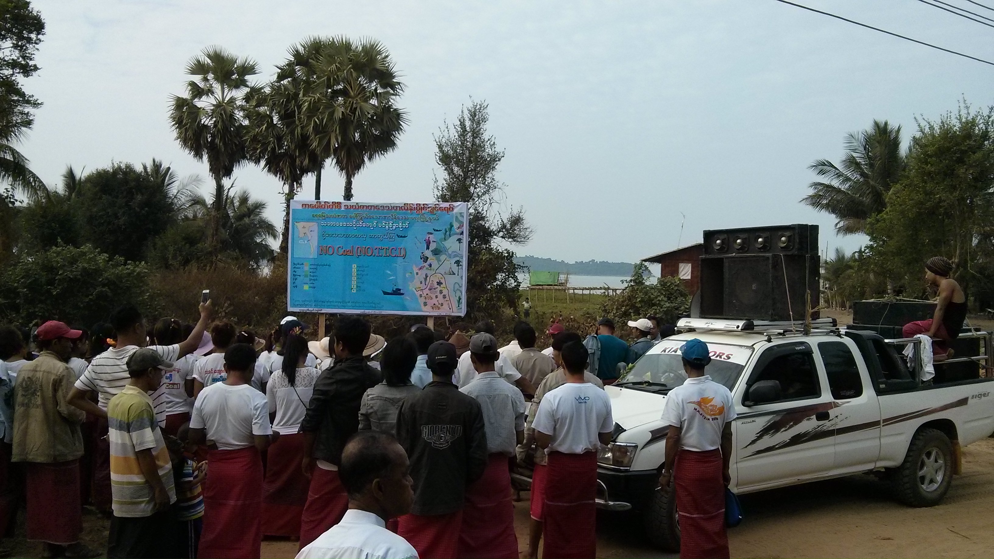 ကျောက်မီးသွေးနှင့် တိုယိုထိုင်းကုမ္ပဏီ (Toyo-Thai Corporation Public Company Limited – TTCL) ကို အလိုမရှိကြောင်း ဗီနိုင်းပိုစတာ စိုက်ထူပွဲတစ်ရပ်ကို ဇန်နဝါရီလ ၂၄ က မွန်ပြည်နယ် ရေးမြို့နယ် ဖာလိန်ဒေသရှိ ကျေးရွာများတွင် ပြုလုပ်ခဲ့ကြောင်း သွားရောက်လေ့လာမှုအရ သိရသည်။