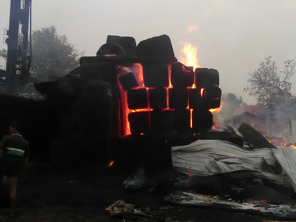 ထိုင်း-မြန်မာနယ်စပ် ဘုရားသုံးဆူမြို့ အမှတ်(၁) ရက်ကွက်ရှိ “ဖီးလစ်” အမည်ရှိ သစ်အချောထည်စက်ရုံ ဧပြီ ၂၁ ရက် နံနက် ၄ နာရီအချိန်ခန့်တွင် မီးစတင်လောင်ကျွမ်းခဲ့ရာ နေ့လည်ပိုင်းတွင် လုံးဝမီးငြိမ်းသွားပြီဟု သိရသည်။